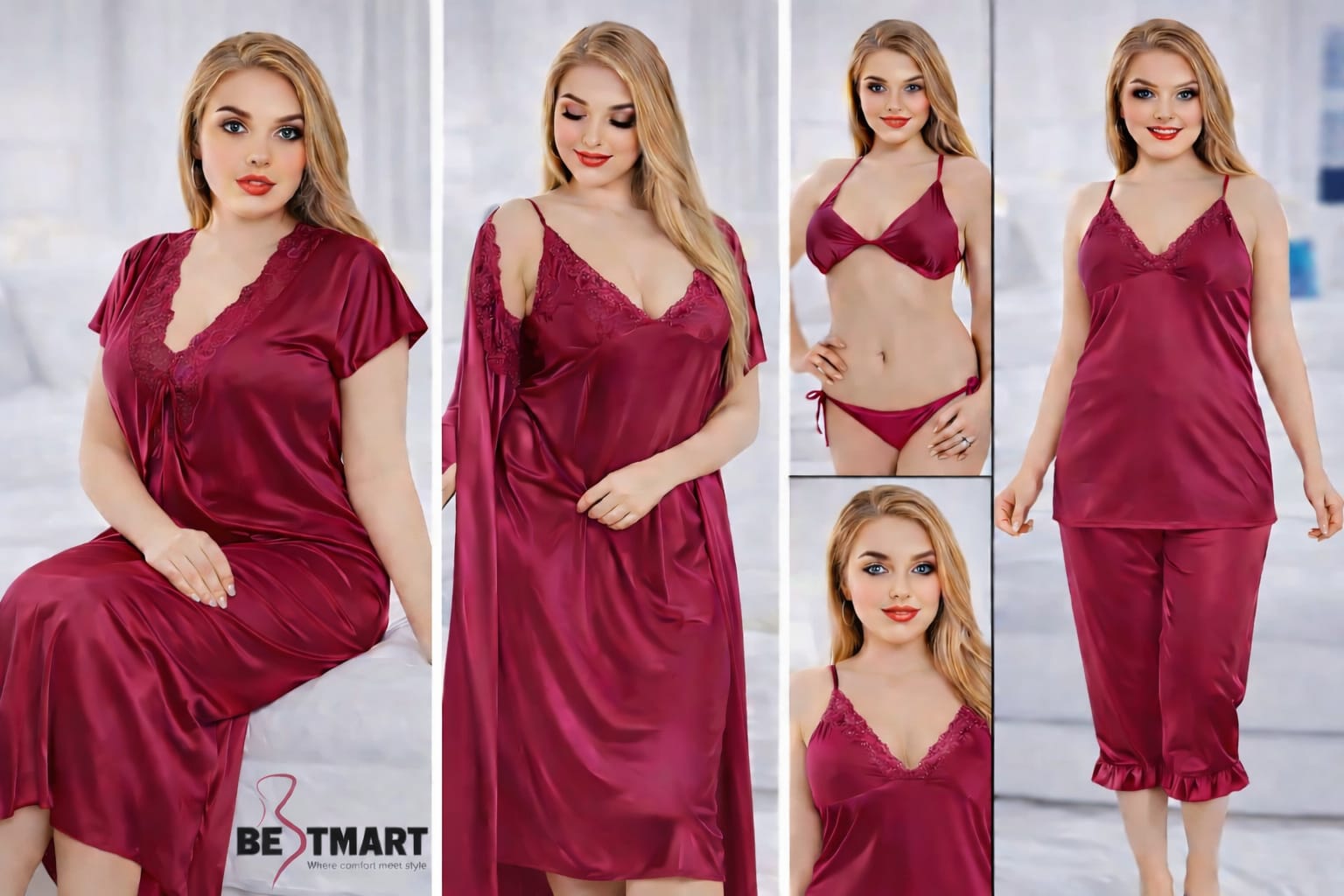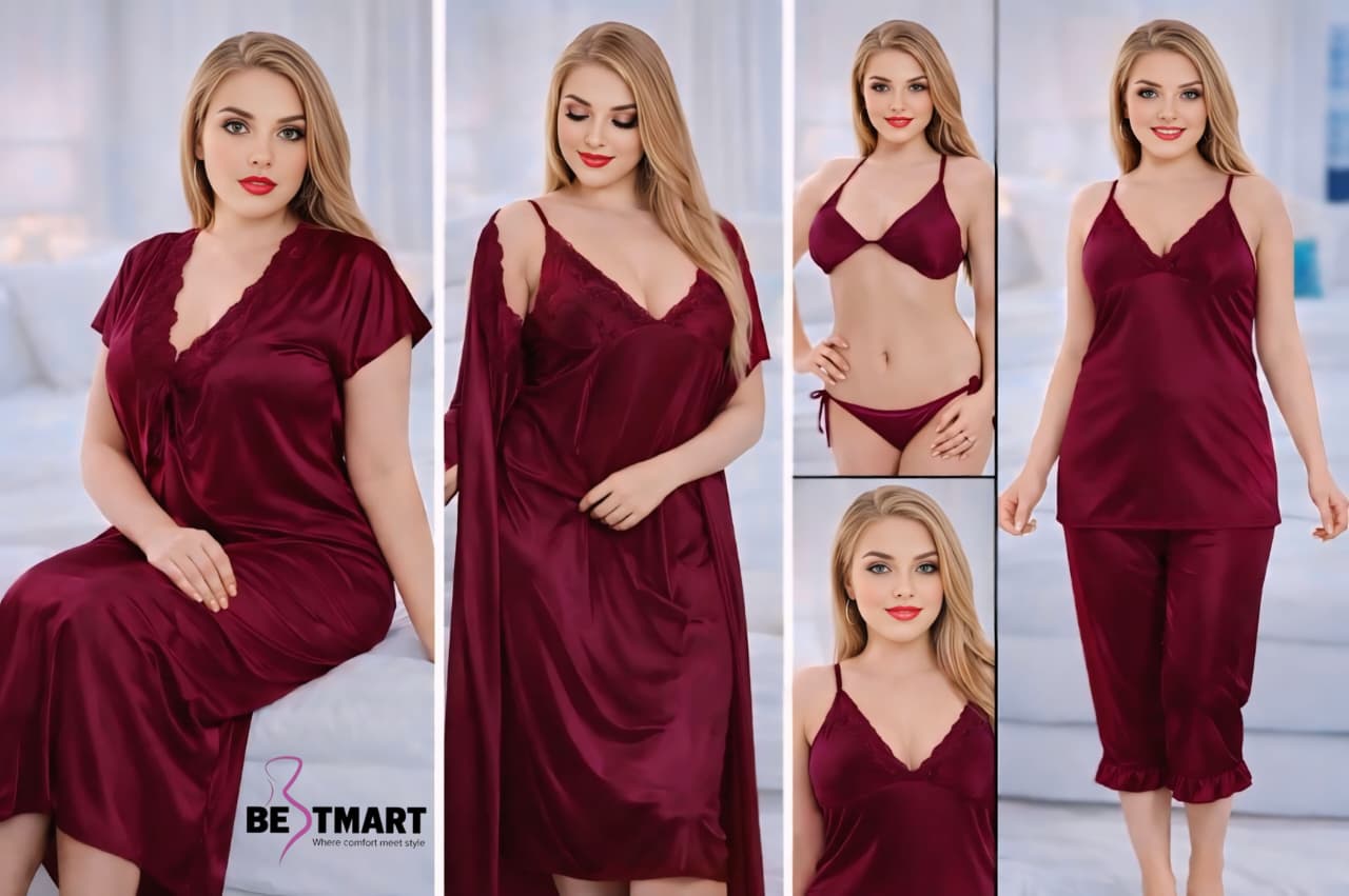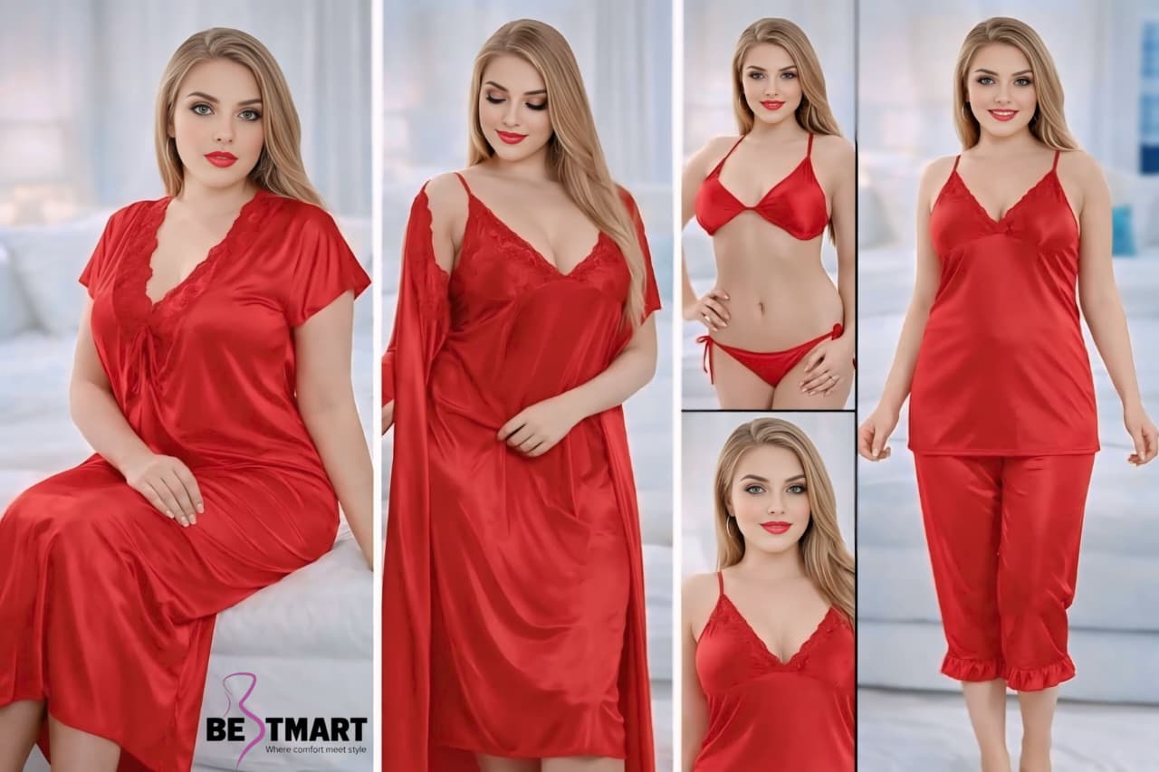 Fashionable 6 Part Night Dress For Ladies